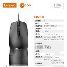 [原装正品]MS101 联想来酷商务有线鼠标