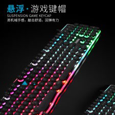 [黑色]先马K820多媒体朋克彩虹发光镭雕字符钢板底座键盘