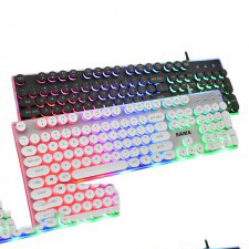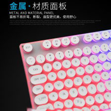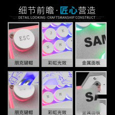 [白色]先马K820多媒体朋克彩虹发光镭雕字符钢板底座键盘