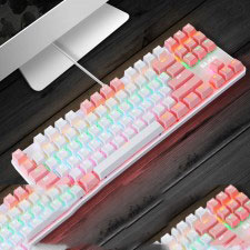 [白粉] K100青轴机械键盘竞技26键无冲87键 双色时尚游戏情侣真机械键盘