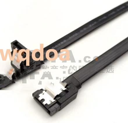 一头弯一头直 45CM SATA数据线 串口硬盘线 光驱线 带卡扣 黑色