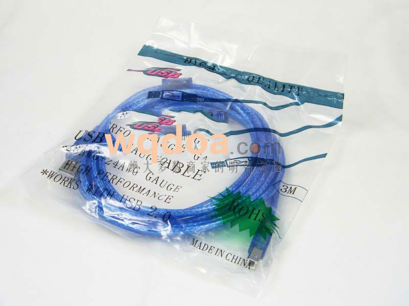 3米 USB标准2.0 24/28 OD5.1全铜 带磁环 打印线.